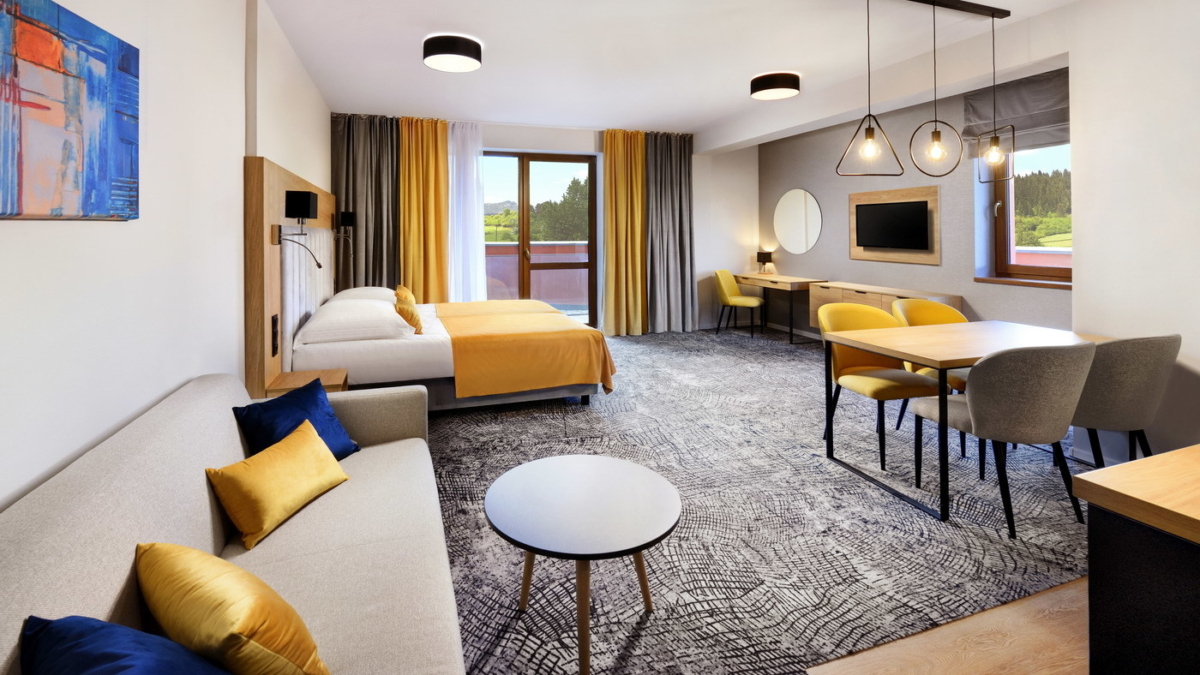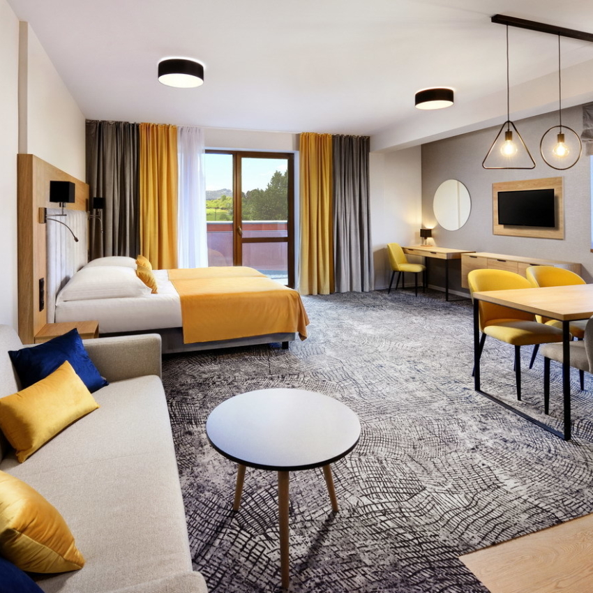 Užijte si odpočinek i aktivní dovolenou přímo v areálu vodního parku Bešeňová. Nabízíme moderně vybavená studia s balkonem nebo terasou, kuchyňským koutem a jídelním stolem. Součástí je také rozkládací gauč jako přistýlka, což zajišťuje pohodlí i pro rodiny s dětmi.